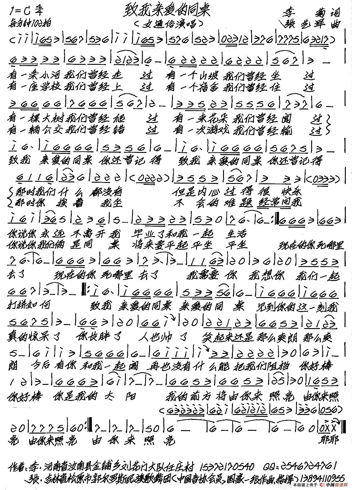 致谢:《中国曲谱网》衷心感谢作者老师馈赠原版歌谱!
