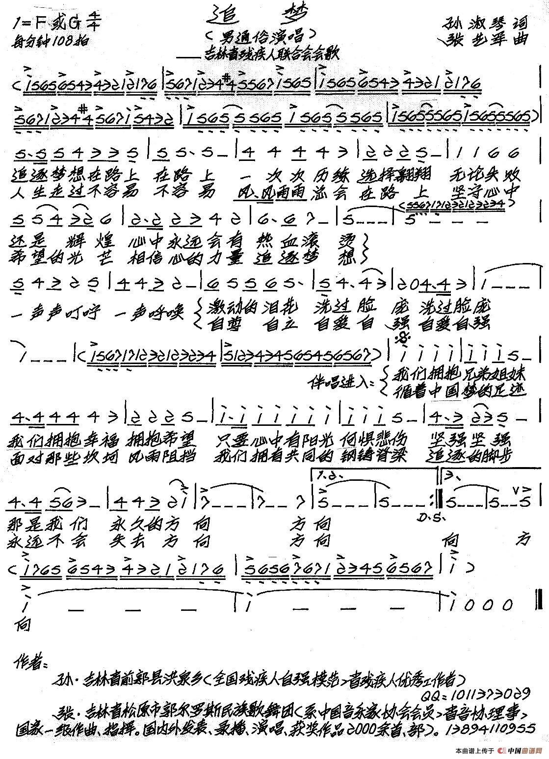 致谢:《中国曲谱网》衷心感谢作者老师馈赠原版歌谱!
