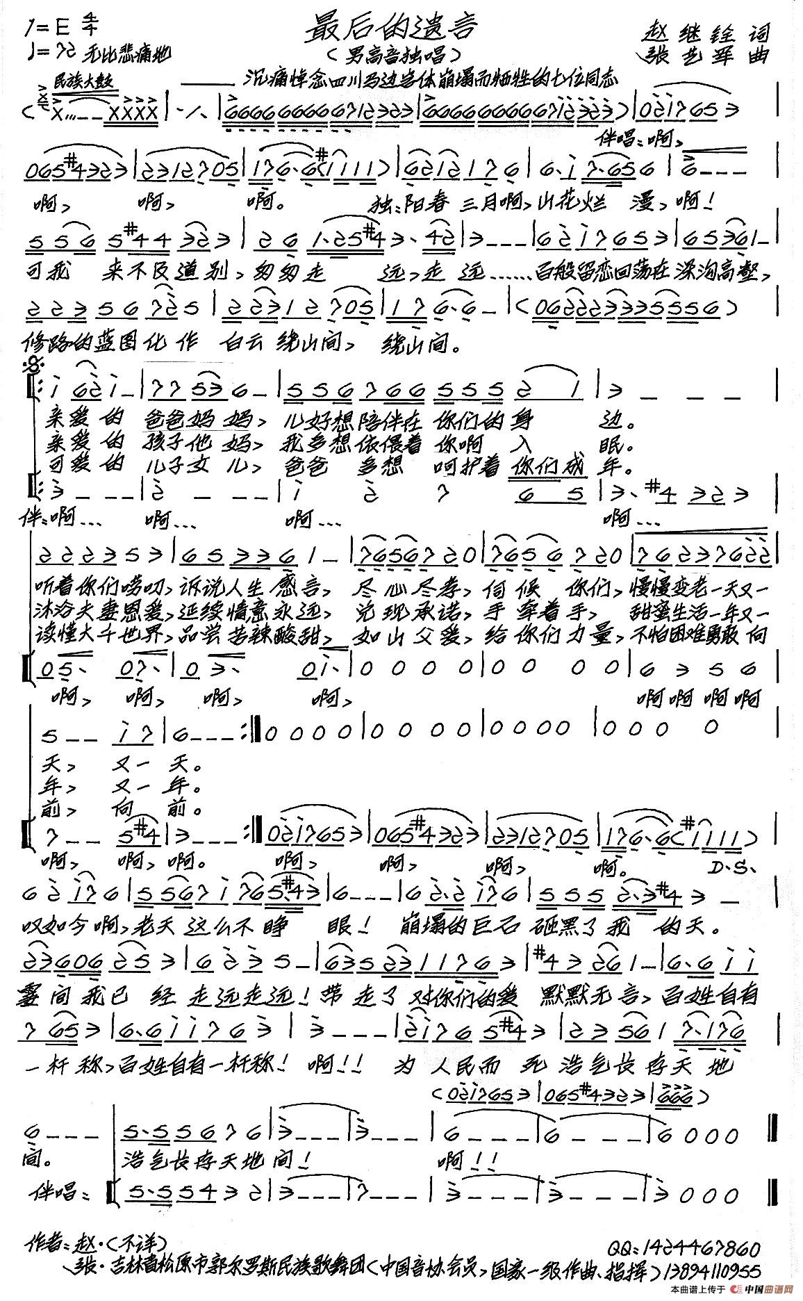 关于《最后的遗言》曲谱的评论