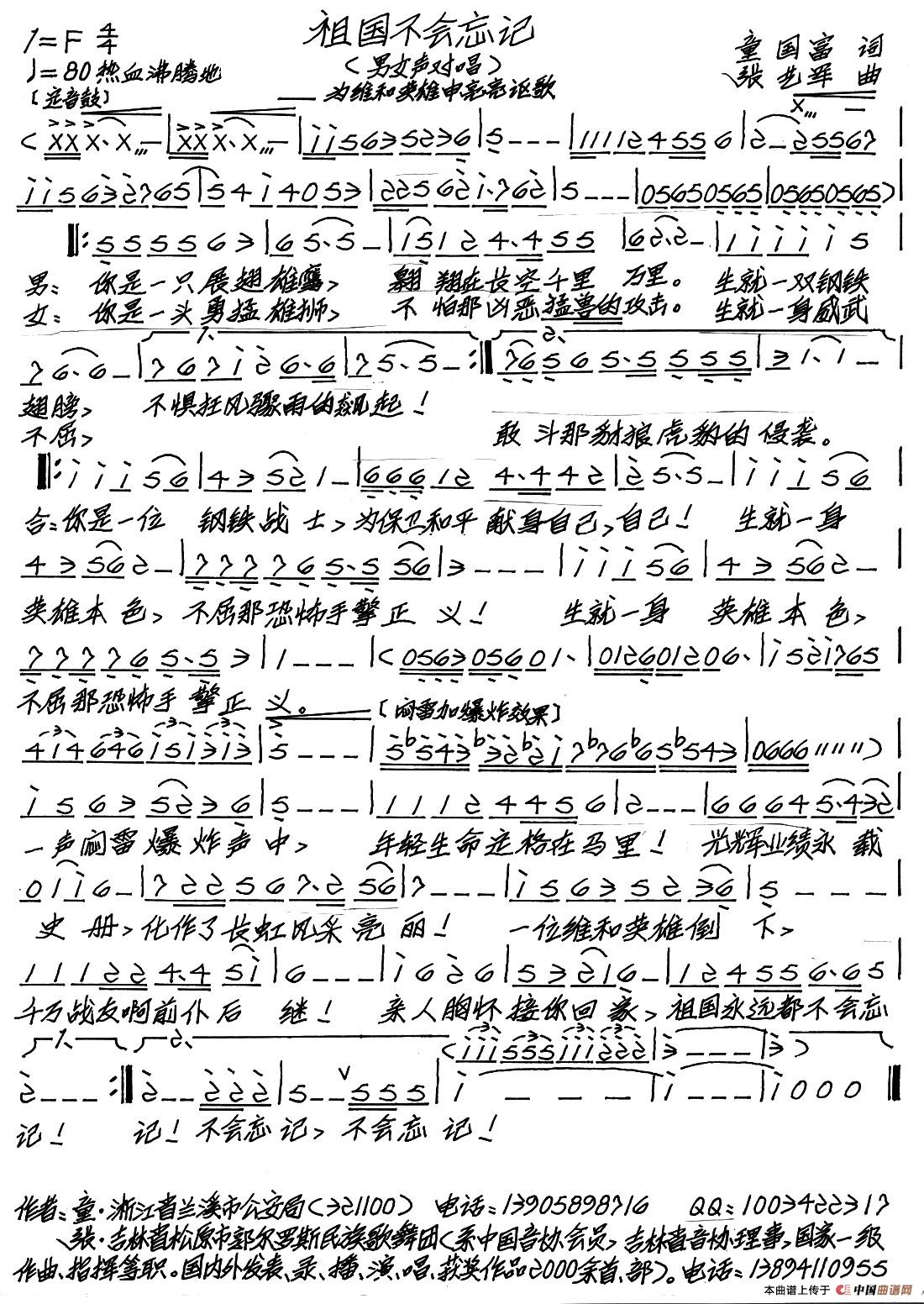 致谢:《中国曲谱网》衷心感谢作者老师馈赠原版歌谱!