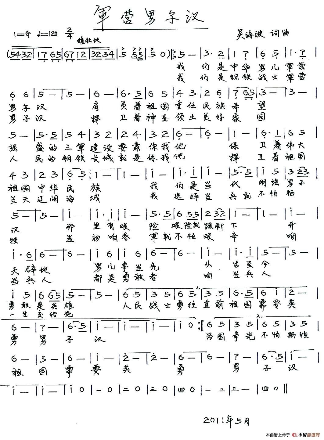 当前位置: 首页 谱友园地 手稿谱区 军营男子汉(吴海波 词曲)