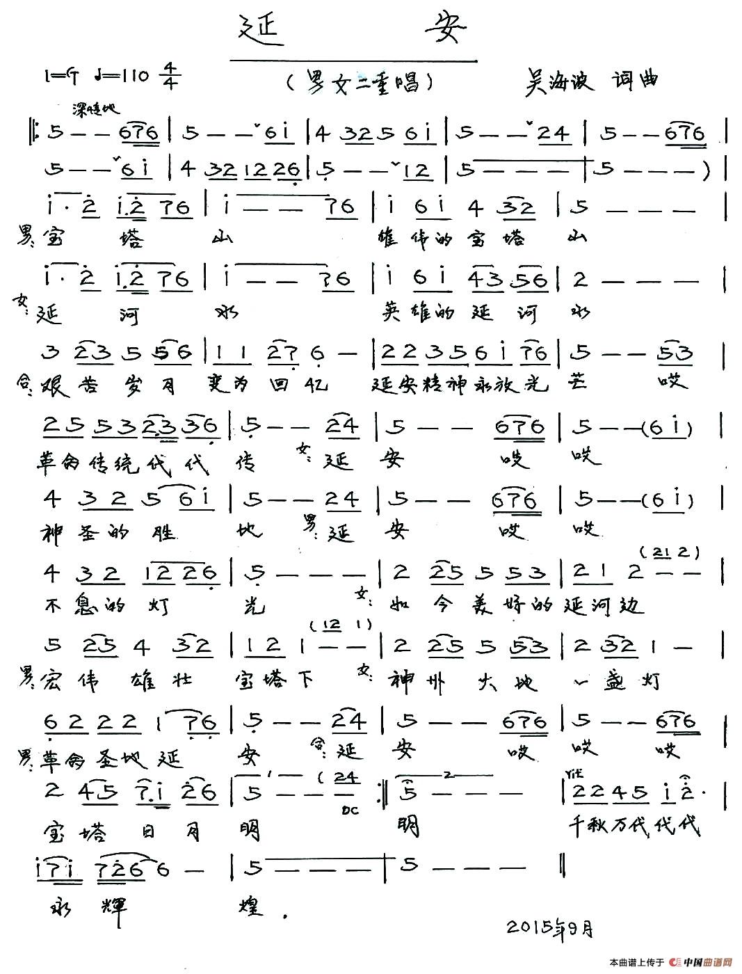 关于《延安》曲谱的评论