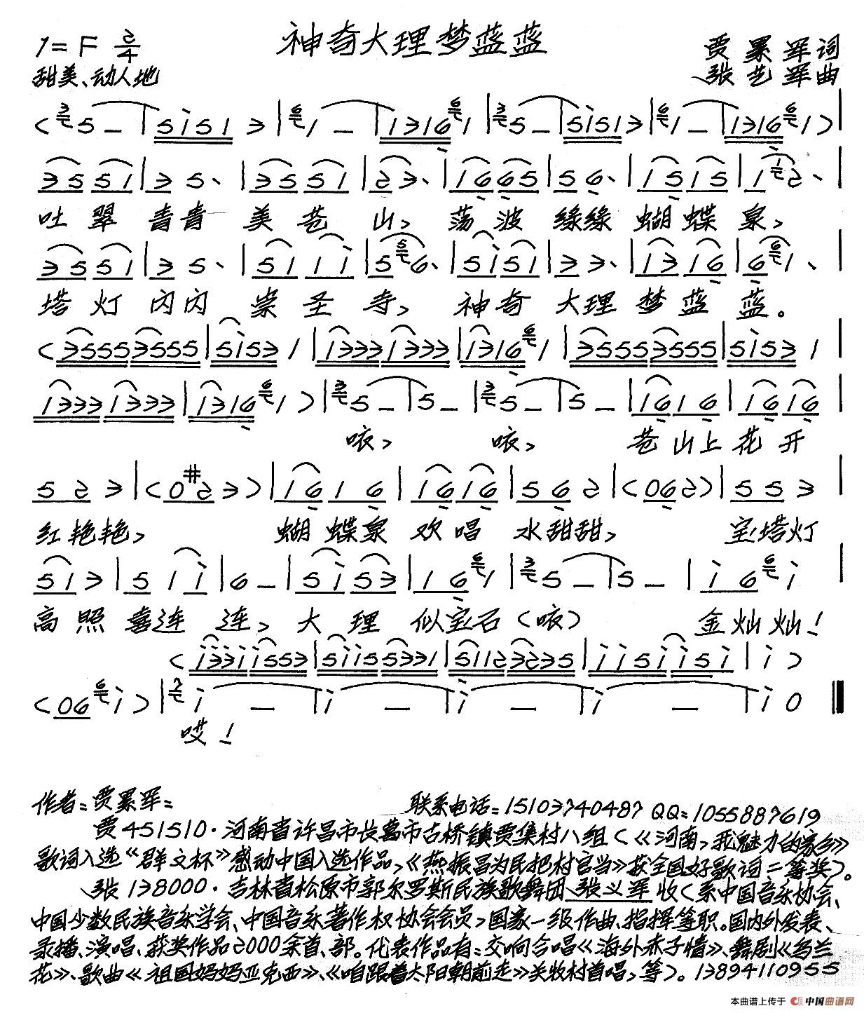 关于《神奇大理梦蓝蓝》曲谱的评论