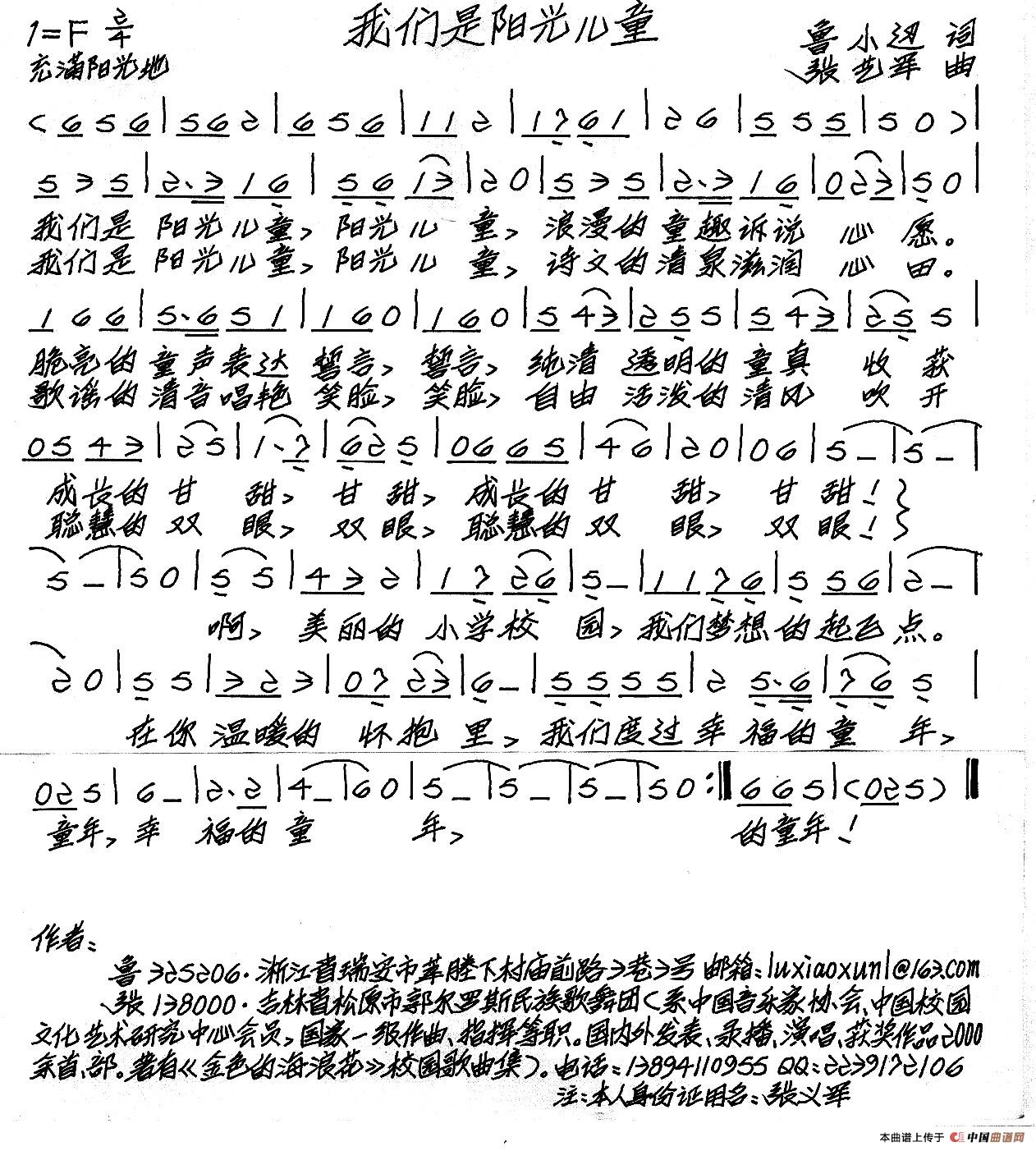 关于《我们是阳光儿童》曲谱的评论