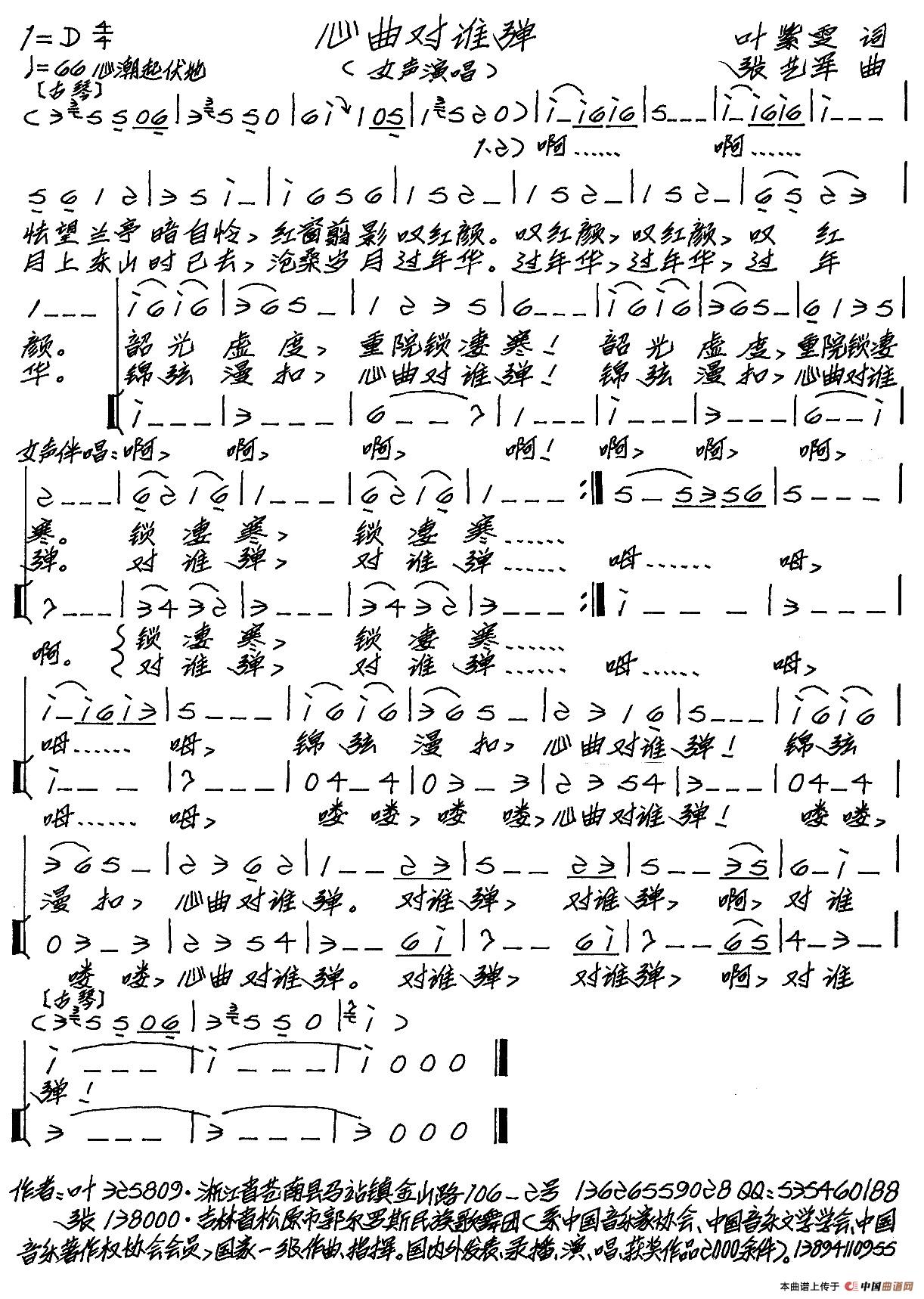 关于《心曲对谁弹》曲谱的评论