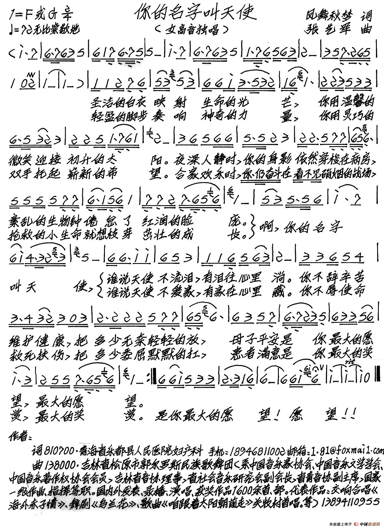 关于《你的名字叫天使》曲谱的评论
