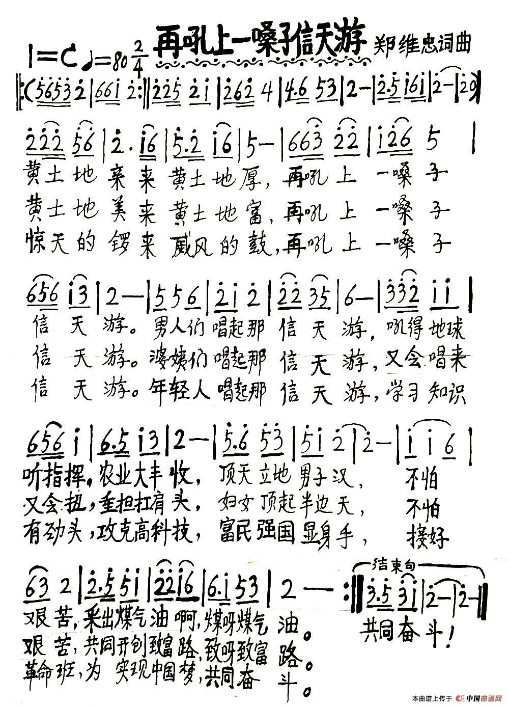 关于《再吼上一嗓子信天游》曲谱的评论