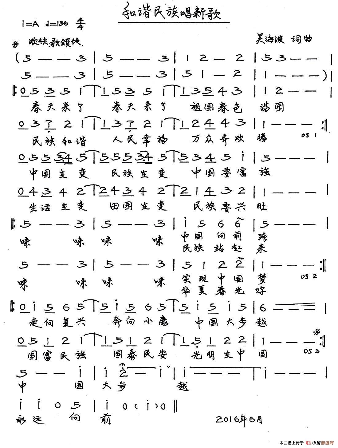 关于《和谐民族唱新歌》曲谱的评论