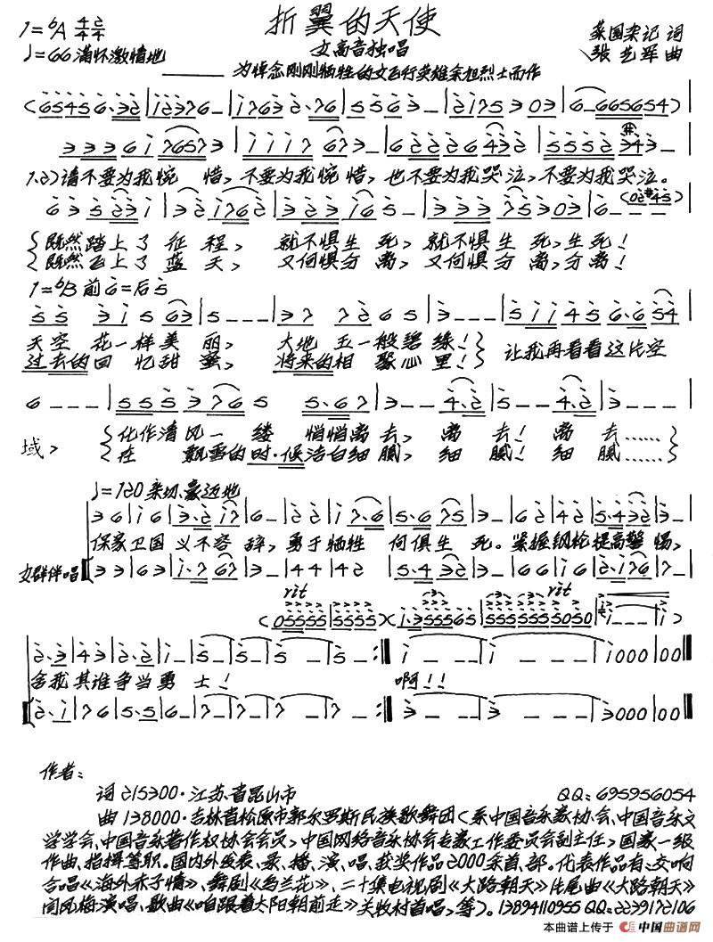 致谢:《中国曲谱网》衷心感谢作者老师馈赠原版歌谱!