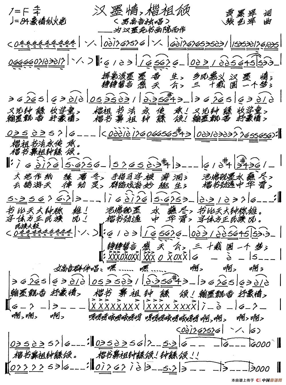 关于《汉墨情,楷祖颂》曲谱的评论