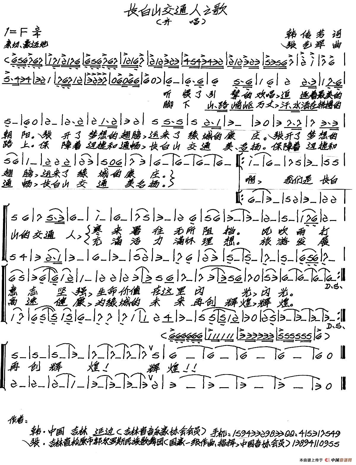 致谢:《中国曲谱网》衷心感谢作者老师馈赠原版歌谱!