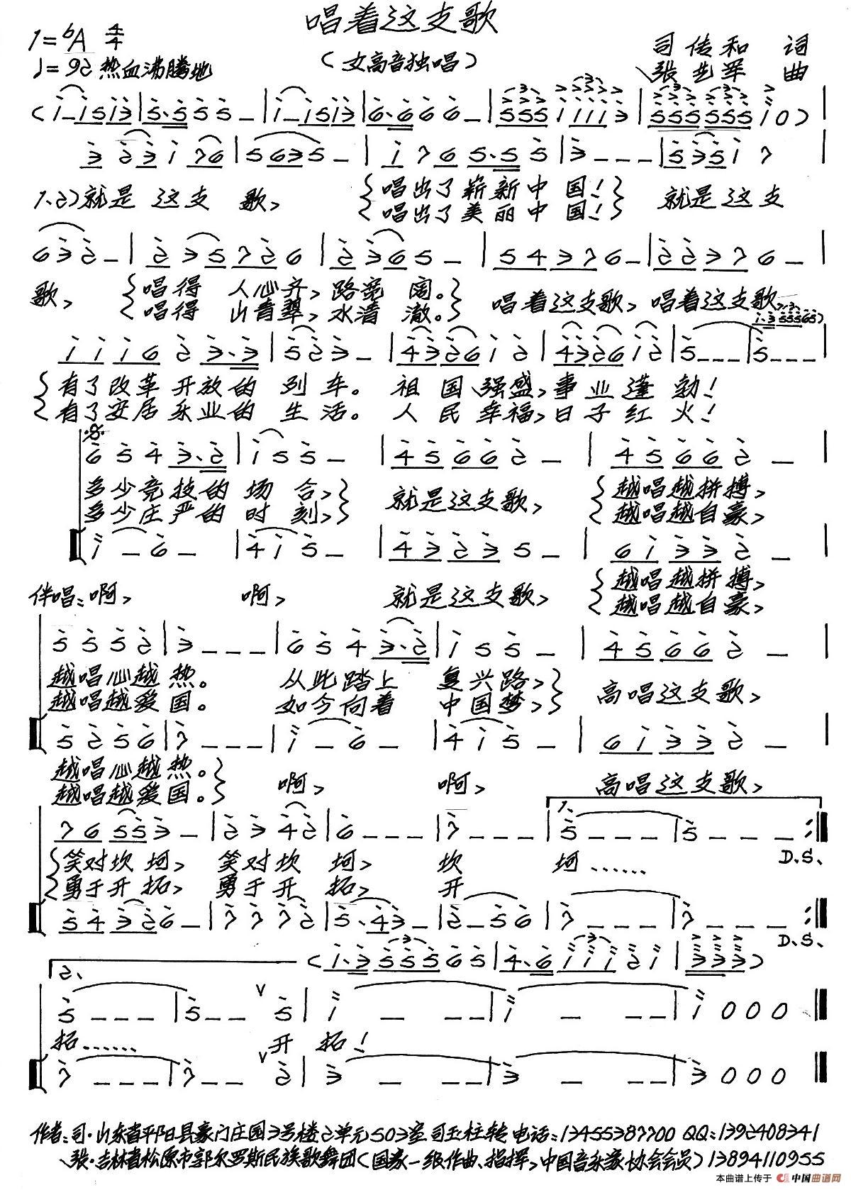 致谢:《中国曲谱网》衷心感谢作者老师馈赠原版歌谱!