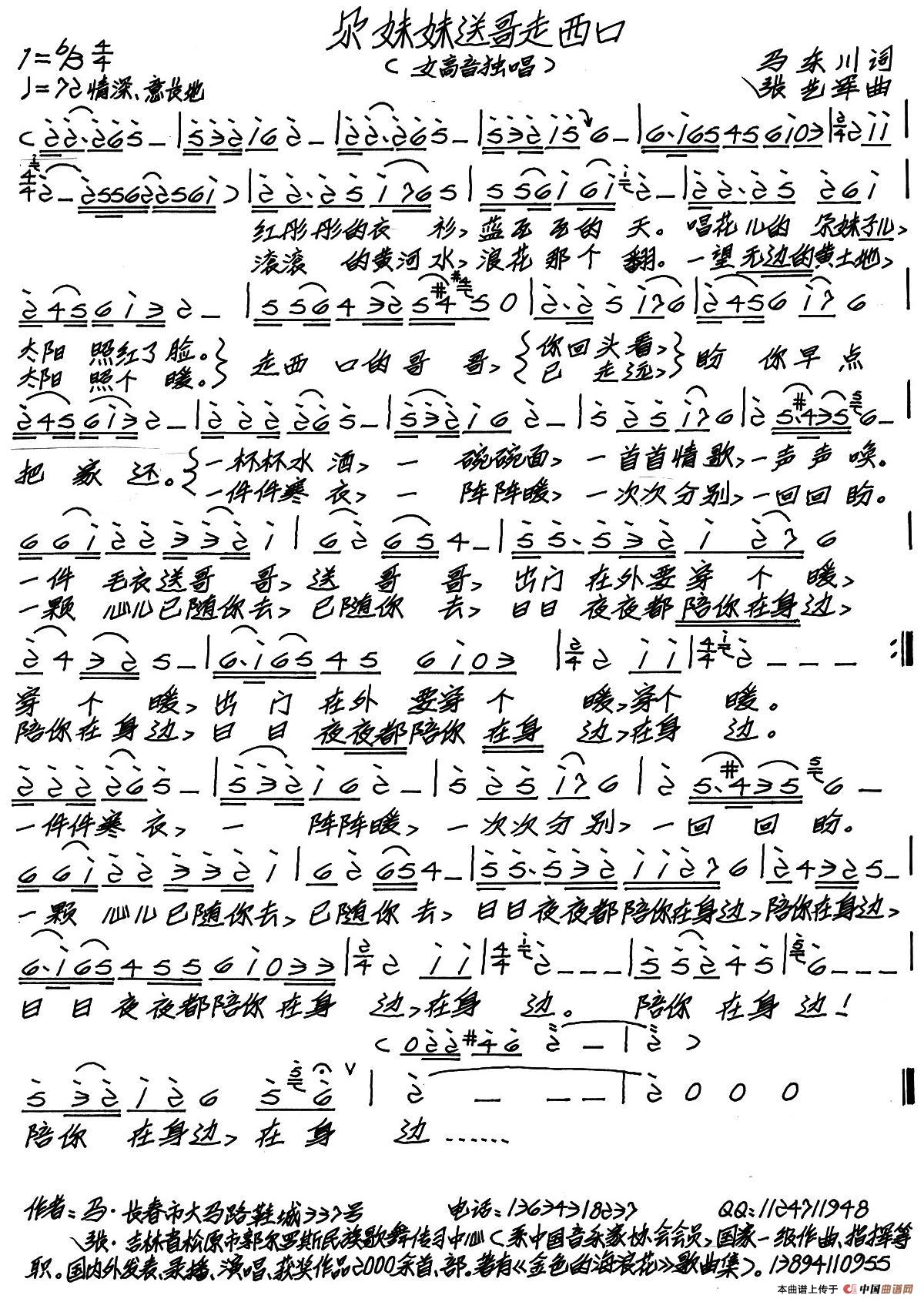 关于《尕妹妹送哥走西口》曲谱的评论
