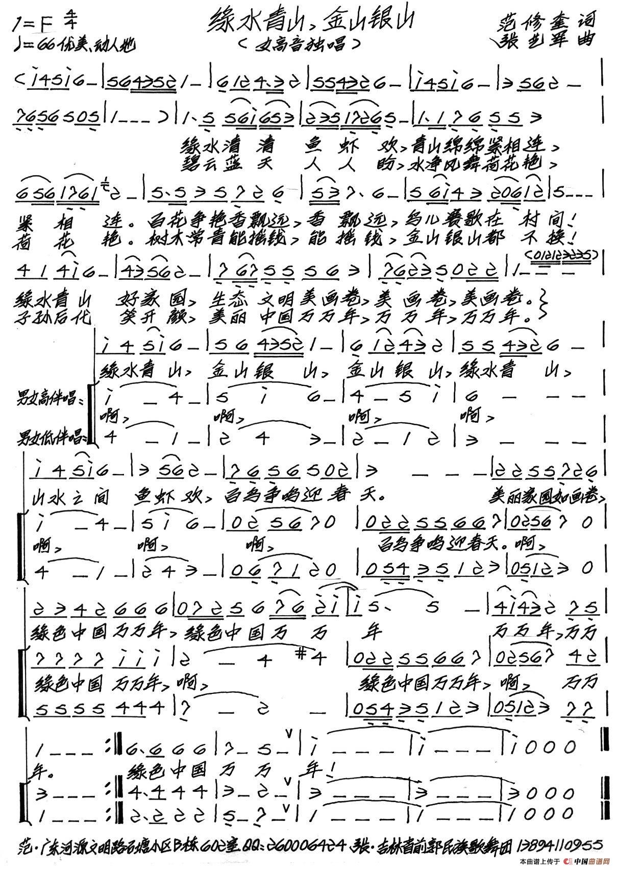 致谢:《中国曲谱网》衷心感谢作者老师馈赠原版歌谱!