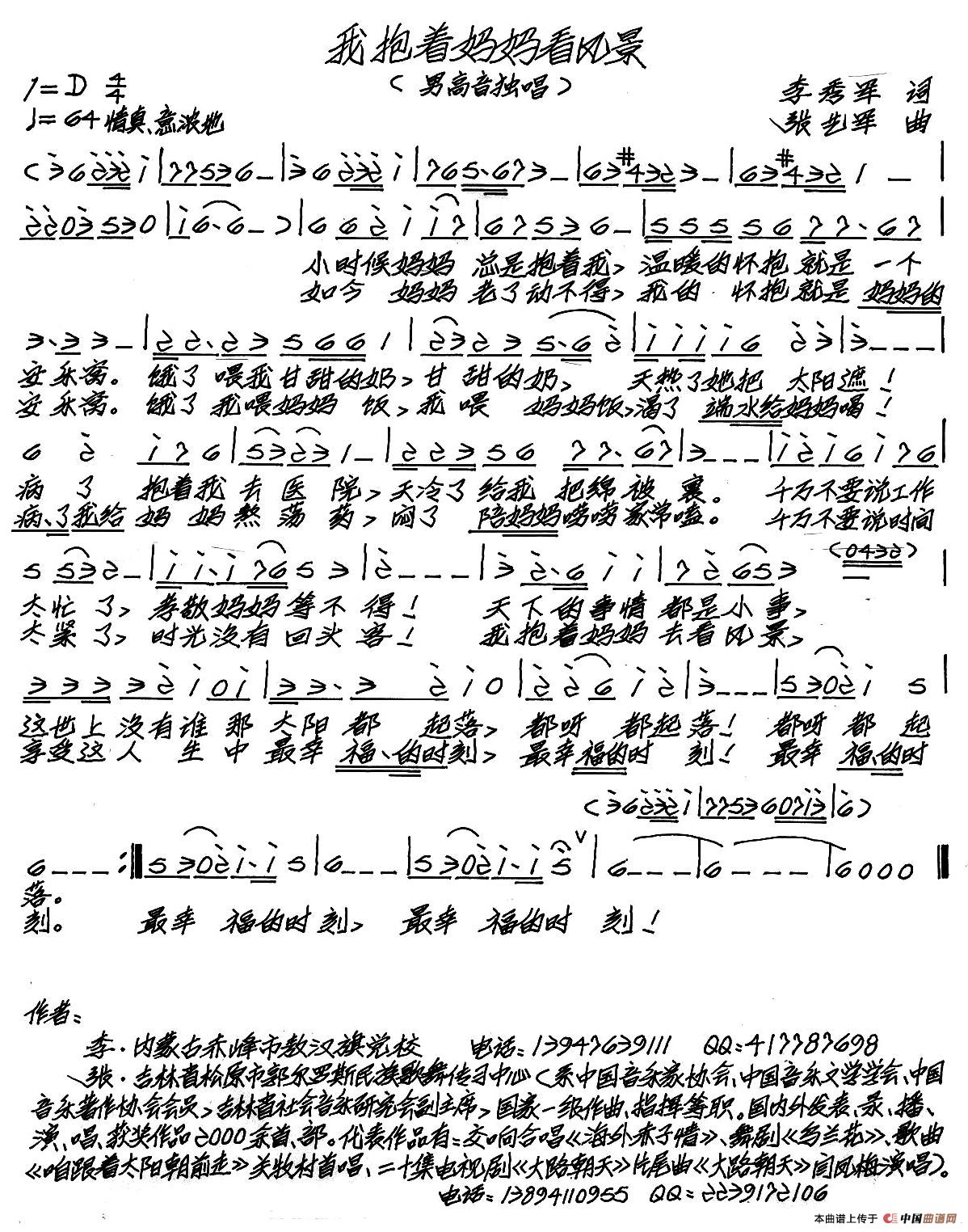 致谢:《中国曲谱网》衷心感谢作者老师馈赠原版歌谱!
