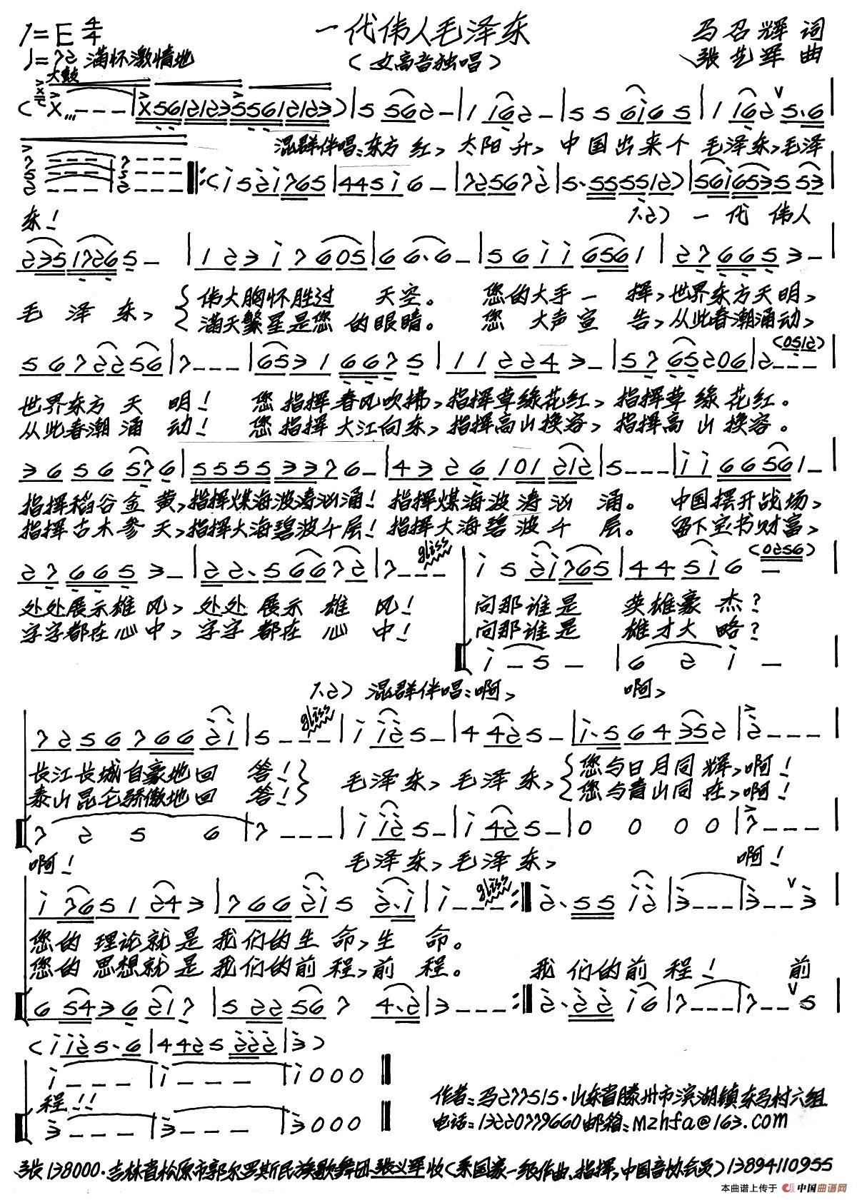 关于《一代伟人毛泽东》曲谱的评论