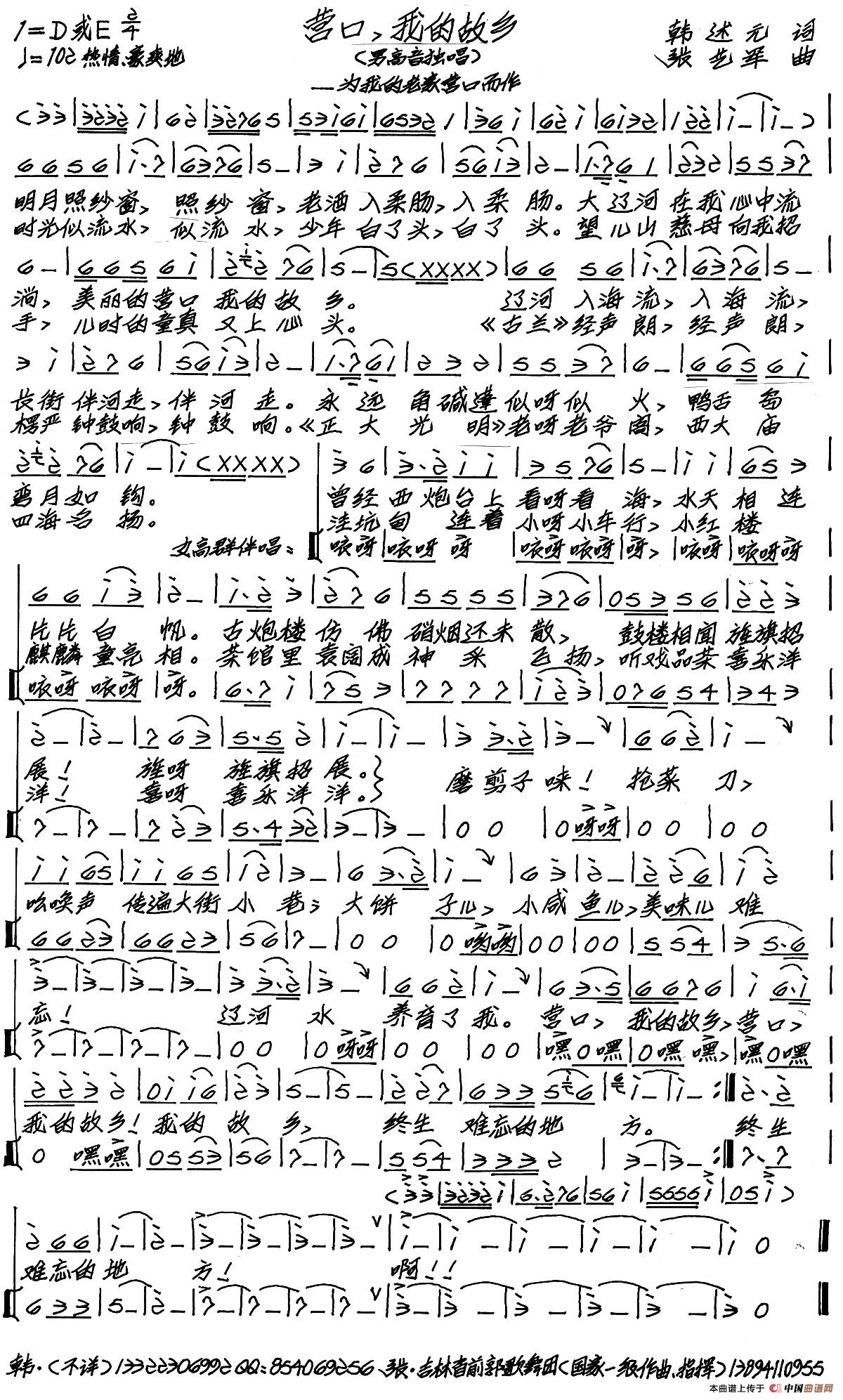 致谢:《中国曲谱网》衷心感谢作者老师馈赠原版歌谱!