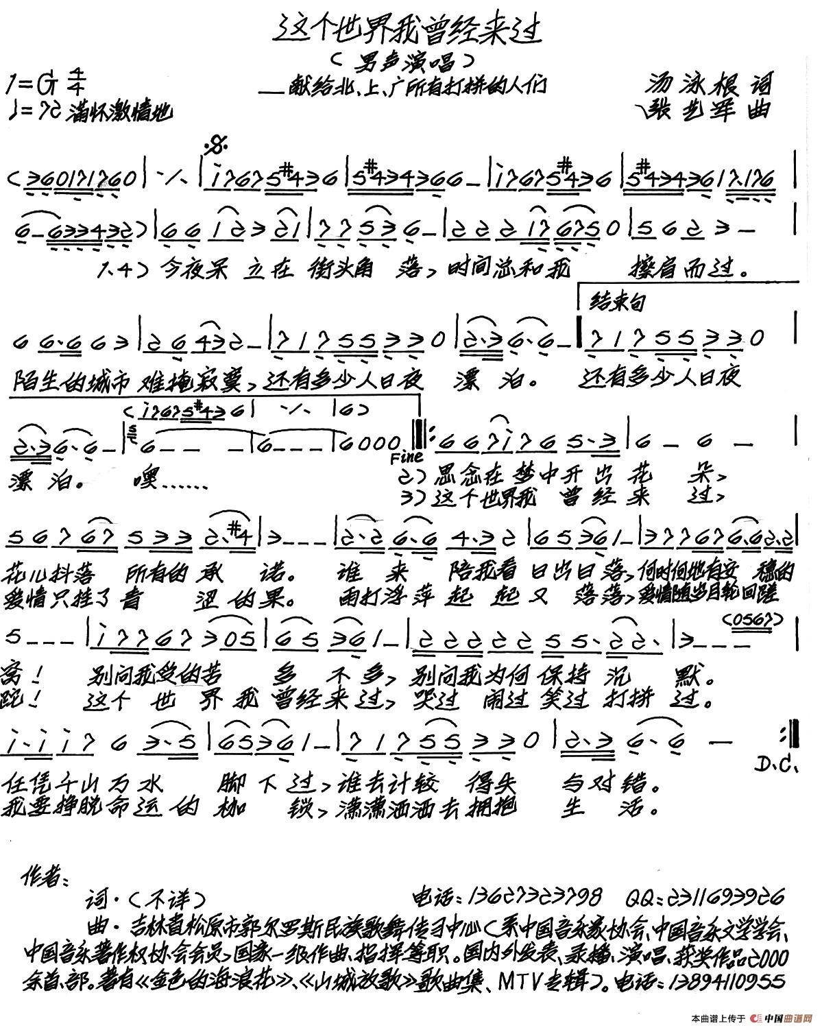 致谢:《中国曲谱网》衷心感谢作者老师馈赠原版歌谱!