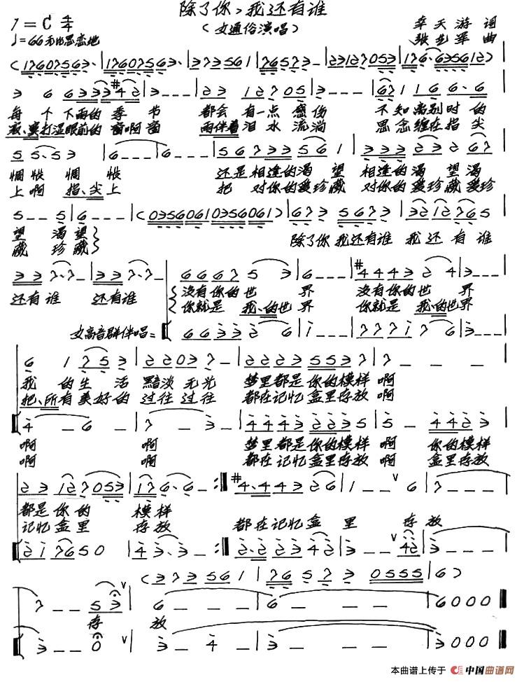 提示:在曲谱图片上单击右键,选择“图片另存为...”即可将曲谱保存到您的电脑中,打印时候可将图片插入到WORD中,调整合适大小打印即可。