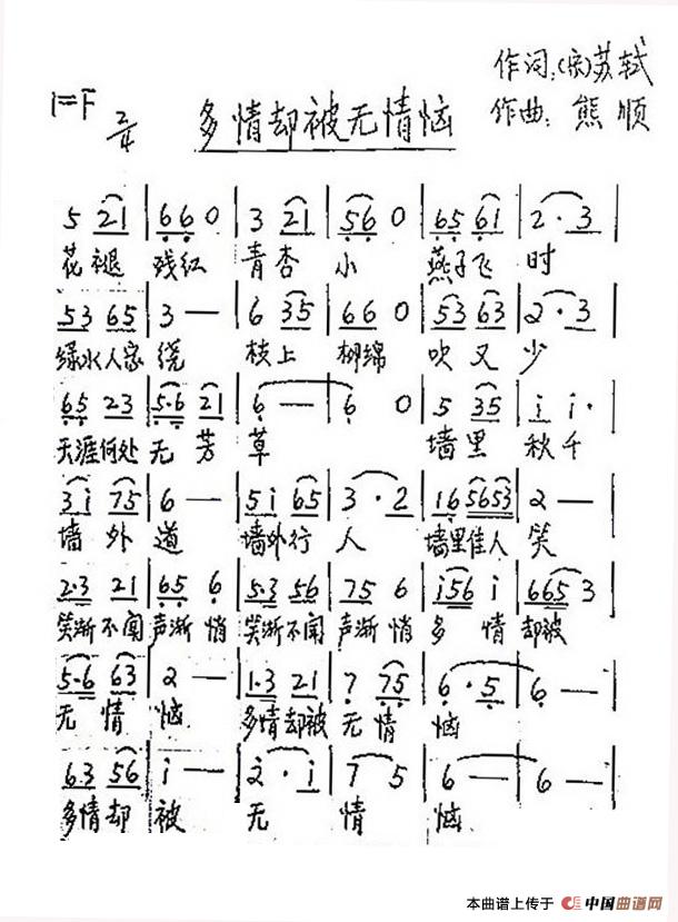 关于《多情却被无情恼》曲谱的评论