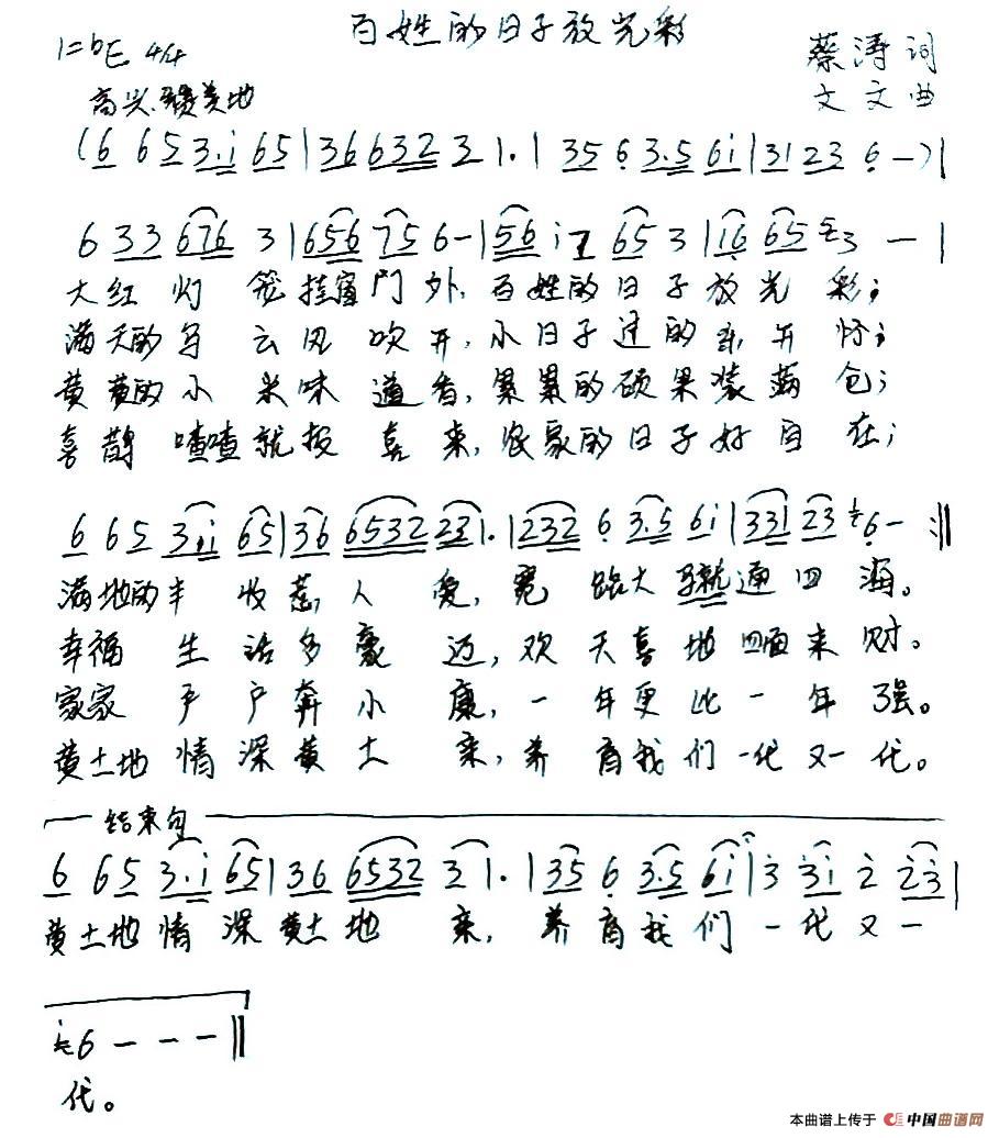 关于《百姓的日子放光彩》曲谱的评论