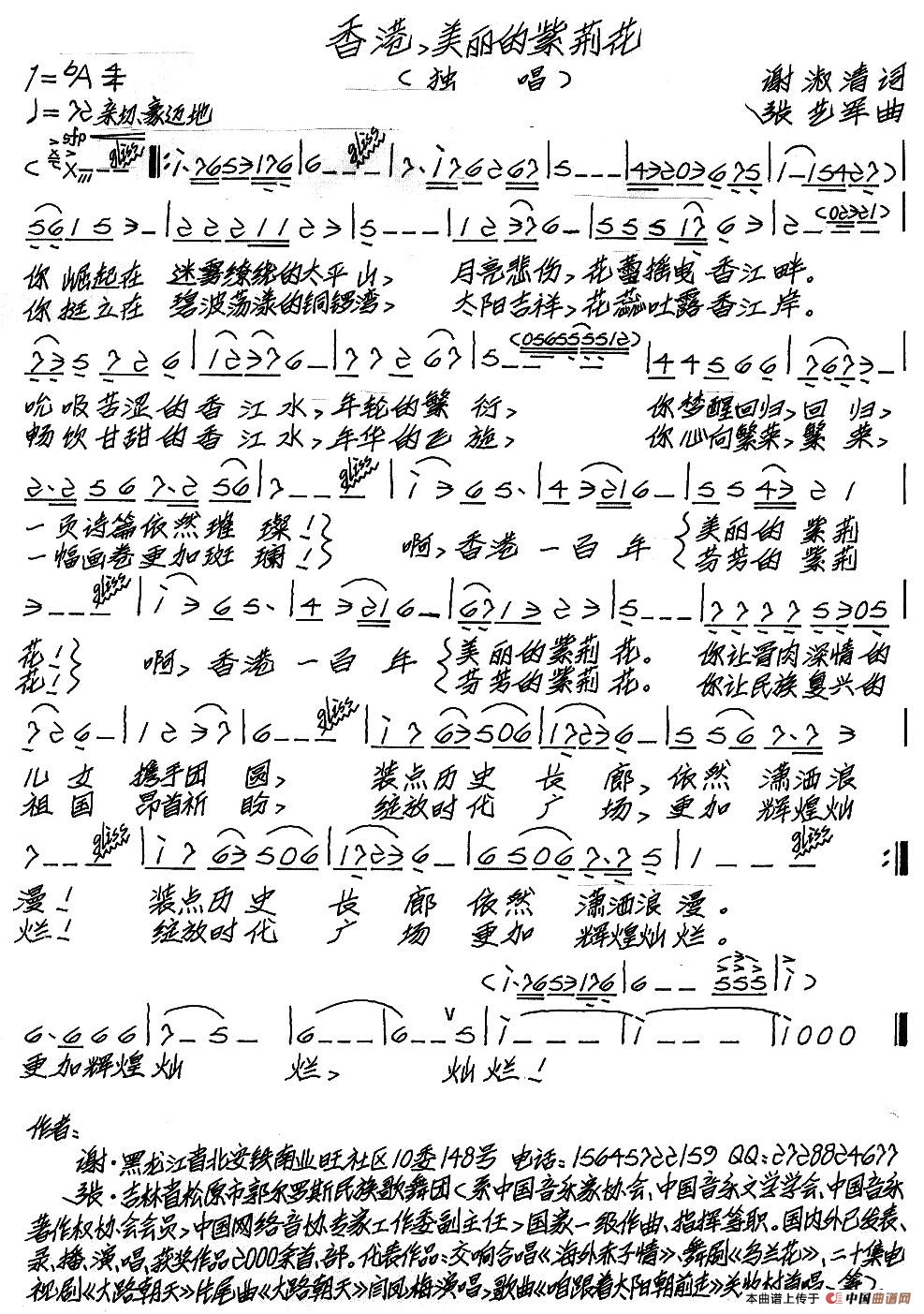 关于《香港,美丽的紫荆花》曲谱的评论