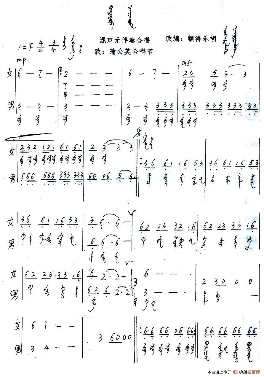 作曲:额得乐胡 改编 来源:谱友额得乐胡上传 上传:额得乐胡