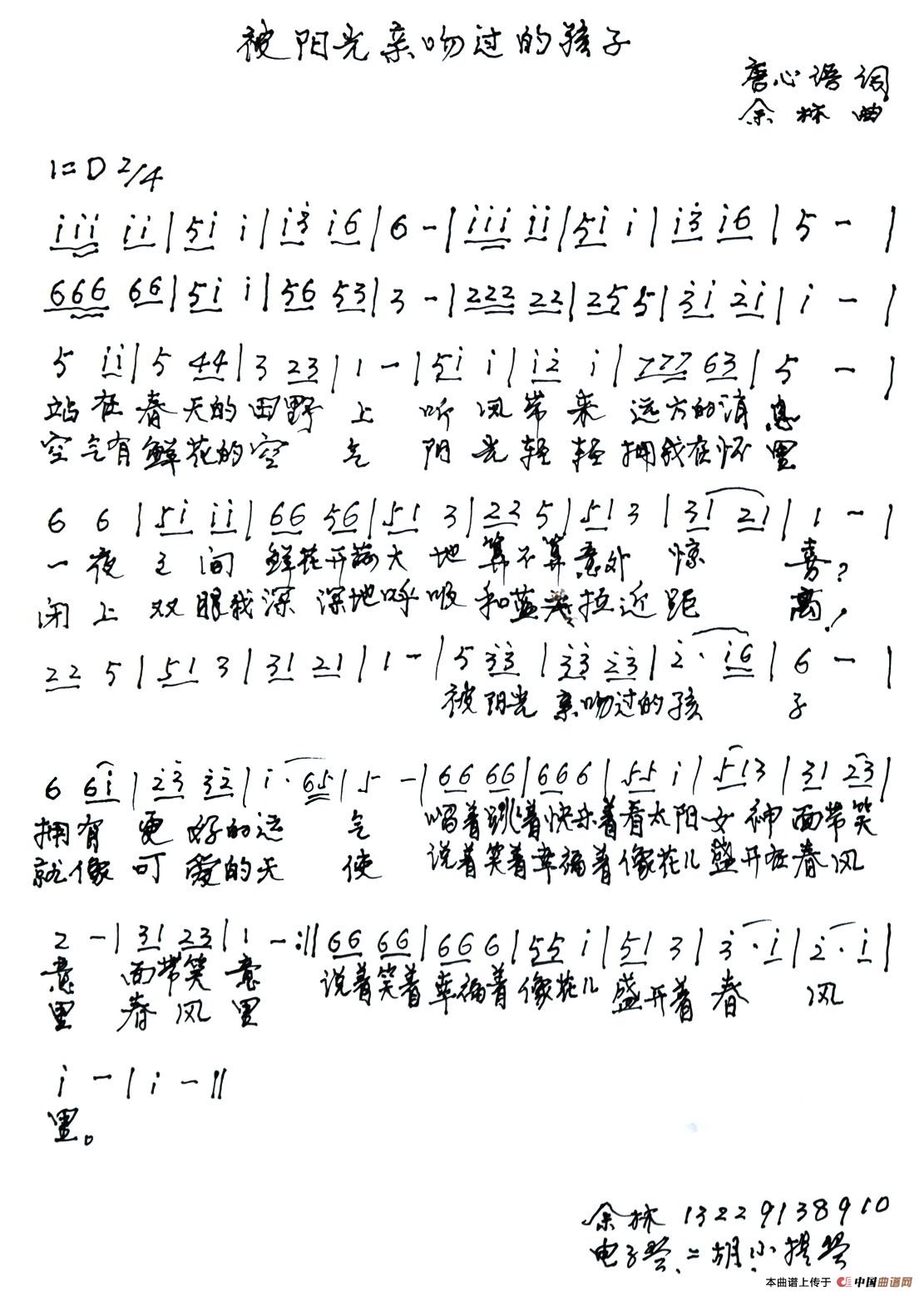 关于《被阳光亲吻过的孩子》曲谱的评论