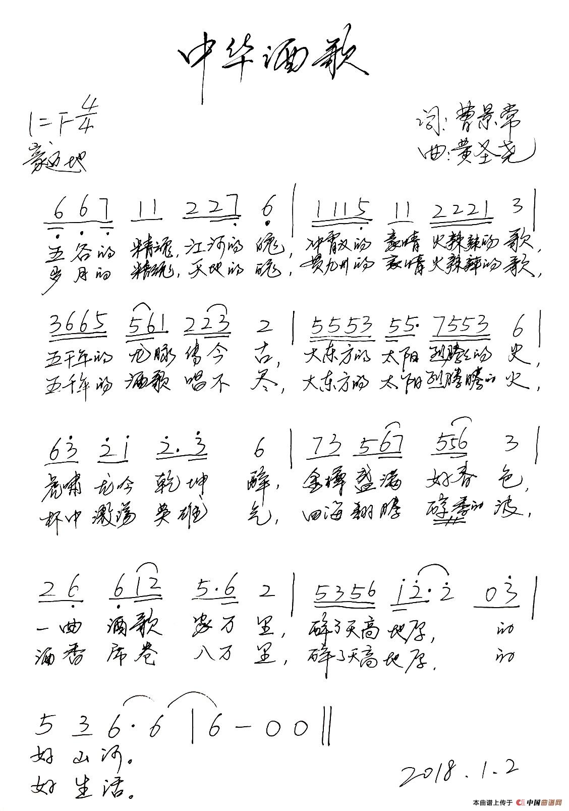 中华酒歌(曹景常词 黄圣尧曲)