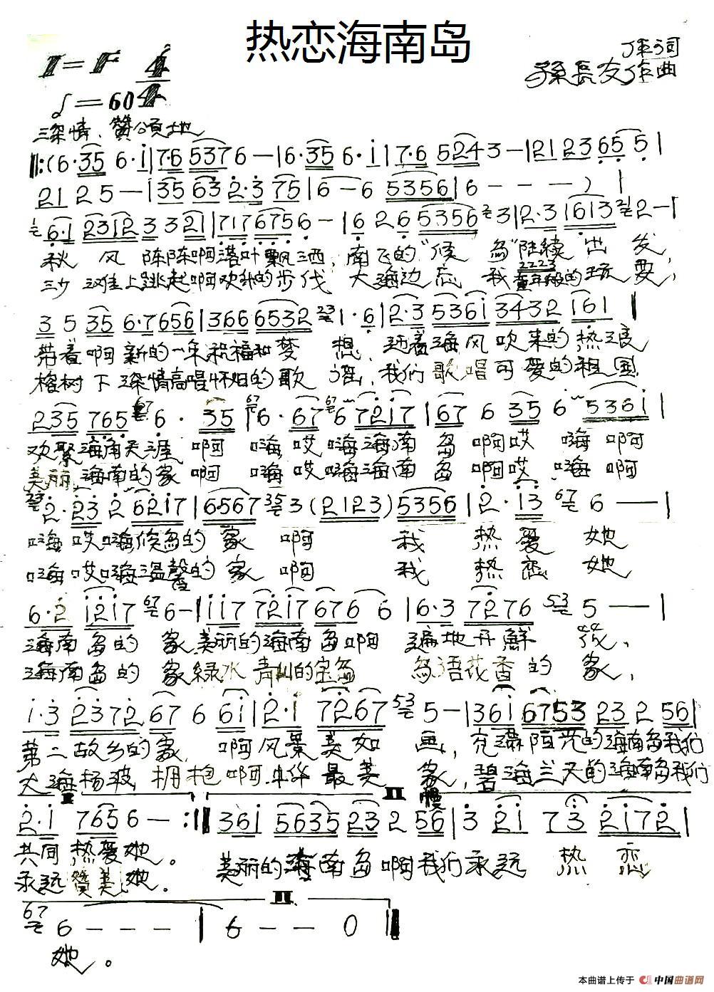 关于《热恋海南岛》曲谱的评论
