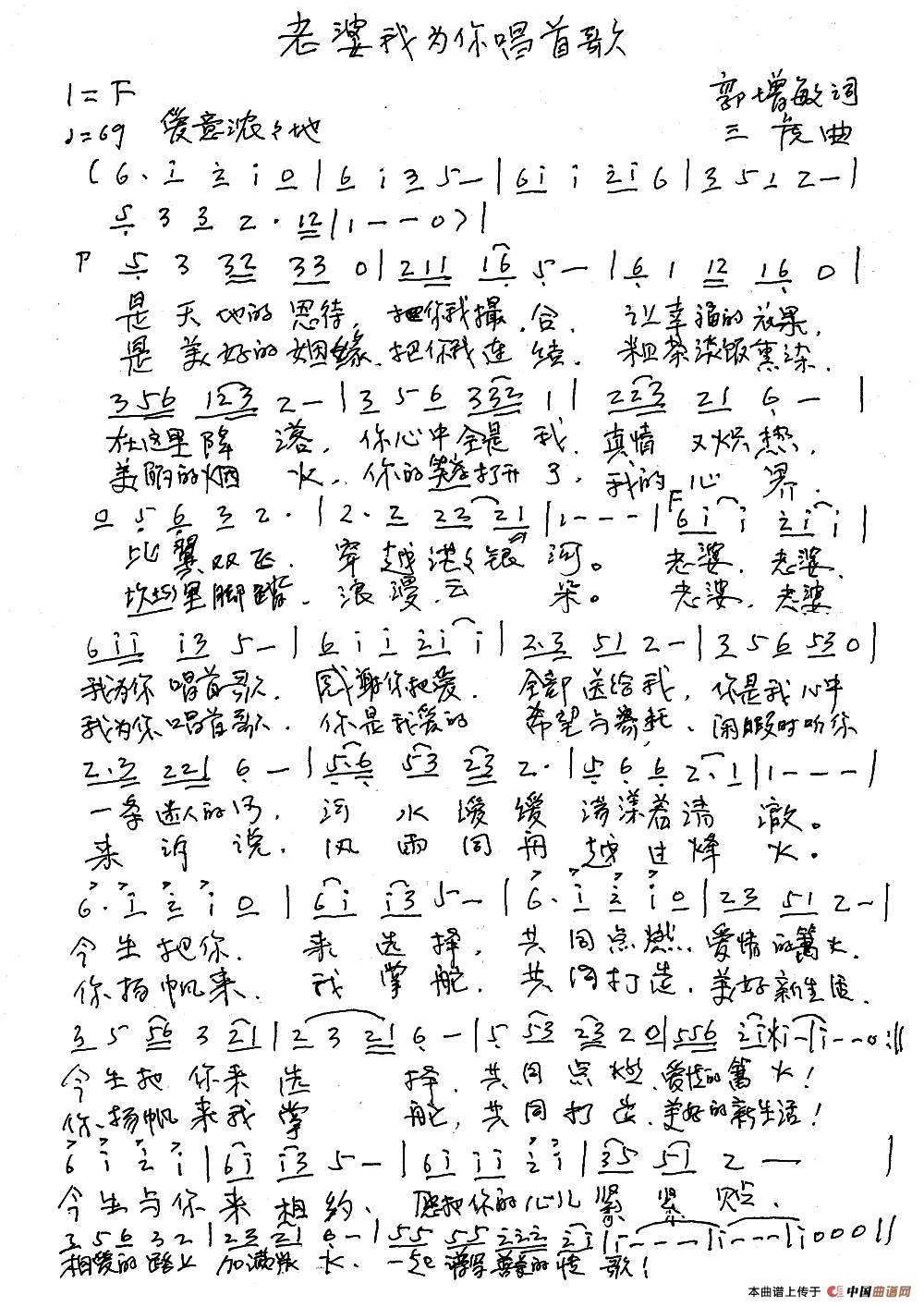 提示:在曲谱图片上单击右键,选择“图片另存为...”即可将曲谱保存到您的电脑中,打印时候可将图片插入到WORD中,调整合适大小打印即可。