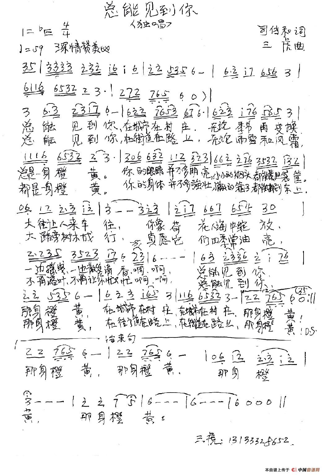关于《总能见到你》曲谱的评论