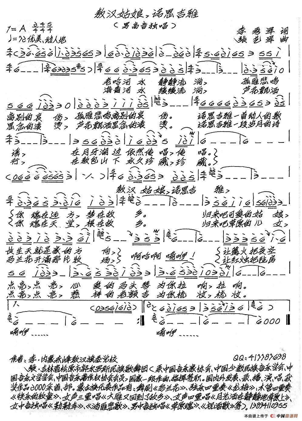 关于《敖汉姑娘,诺思吉雅》曲谱的评论