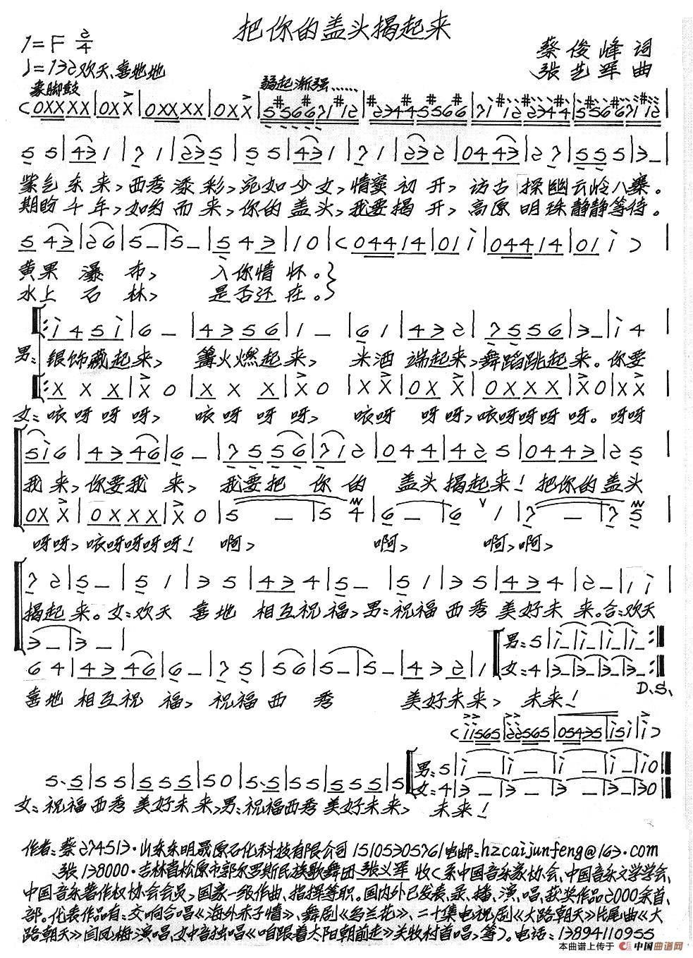 关于《把你的盖头揭起来》曲谱的评论