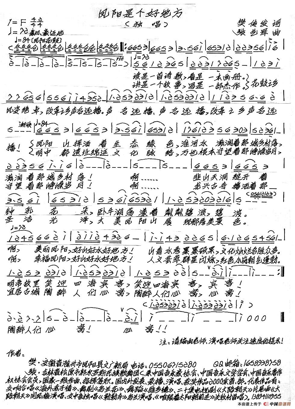 致谢:《中国曲谱网》衷心感谢作者老师馈赠原版歌谱!