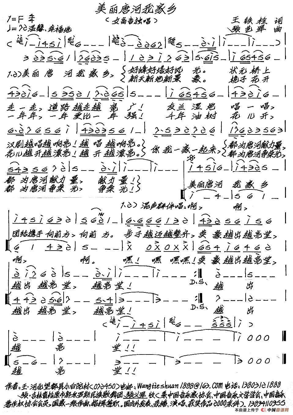 关于《美丽唐河我家乡》曲谱的评论