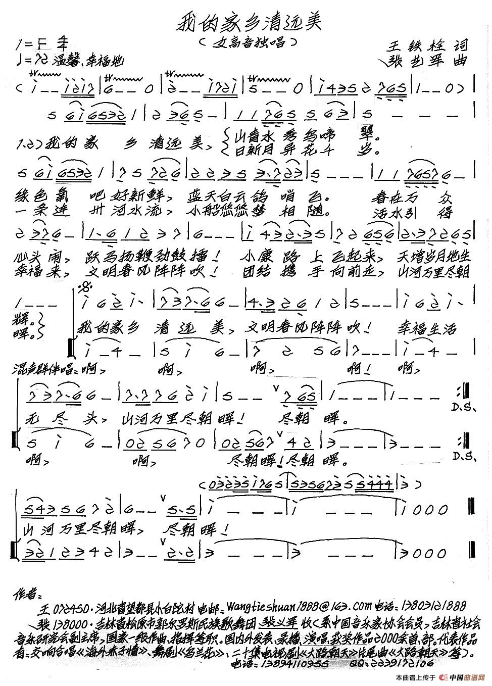 致谢:《中国曲谱网》衷心感谢作者老师馈赠原版歌谱!