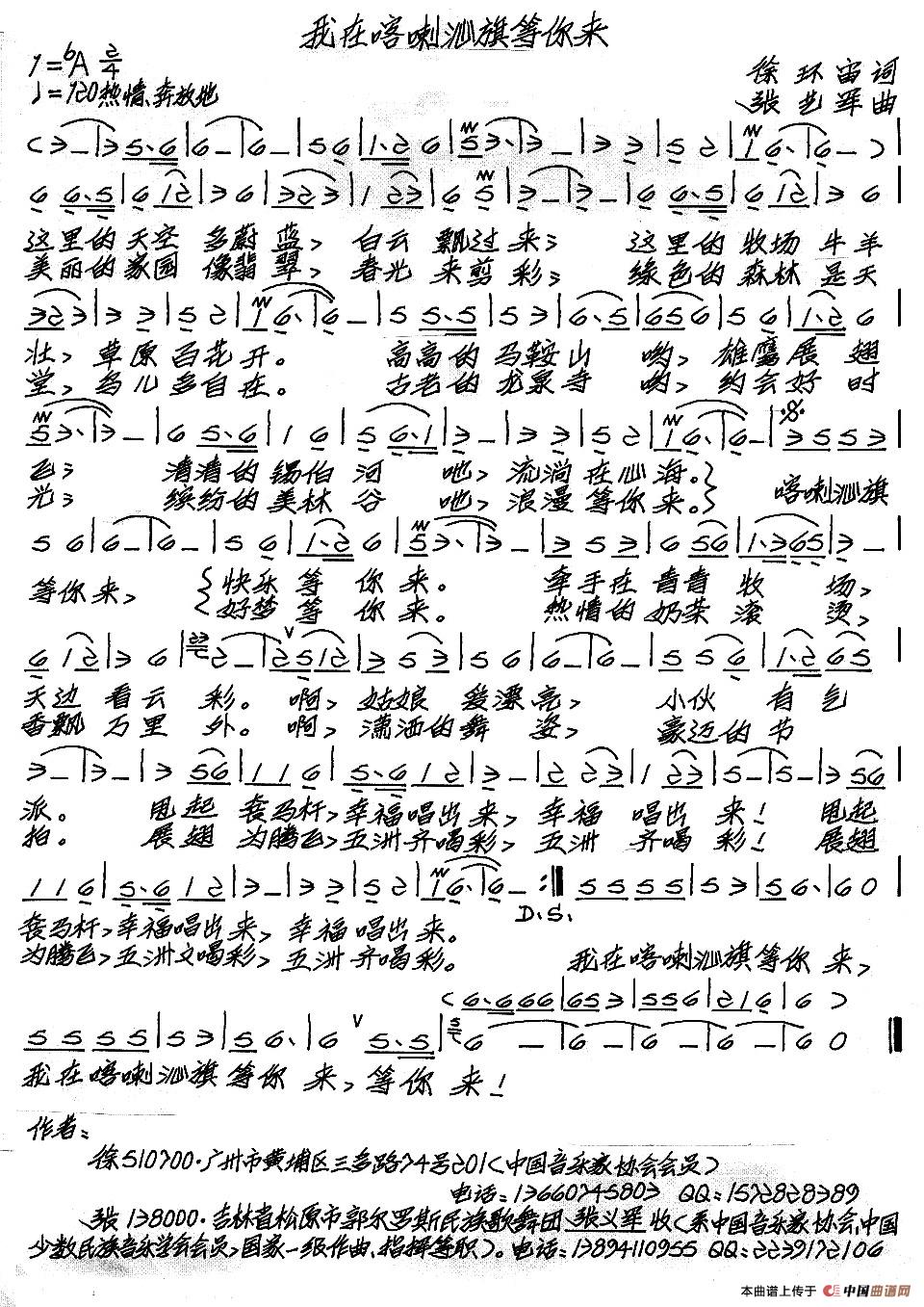 致谢:《中国曲谱网》衷心感谢作者老师馈赠原版歌谱!