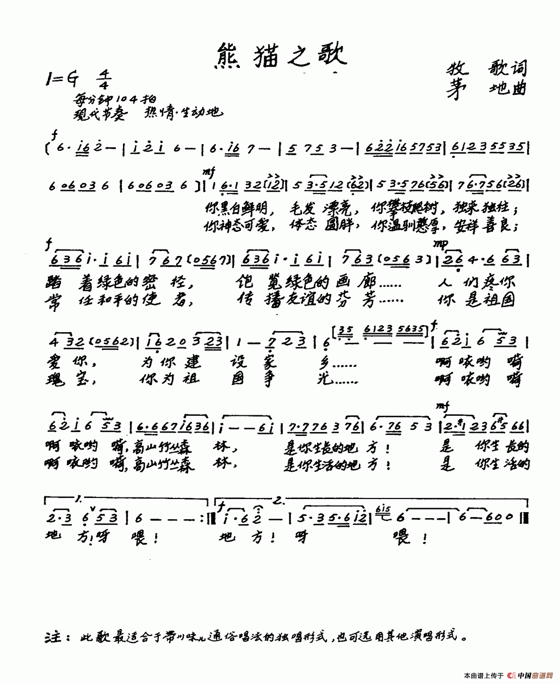 关于《熊猫之歌》曲谱的评论