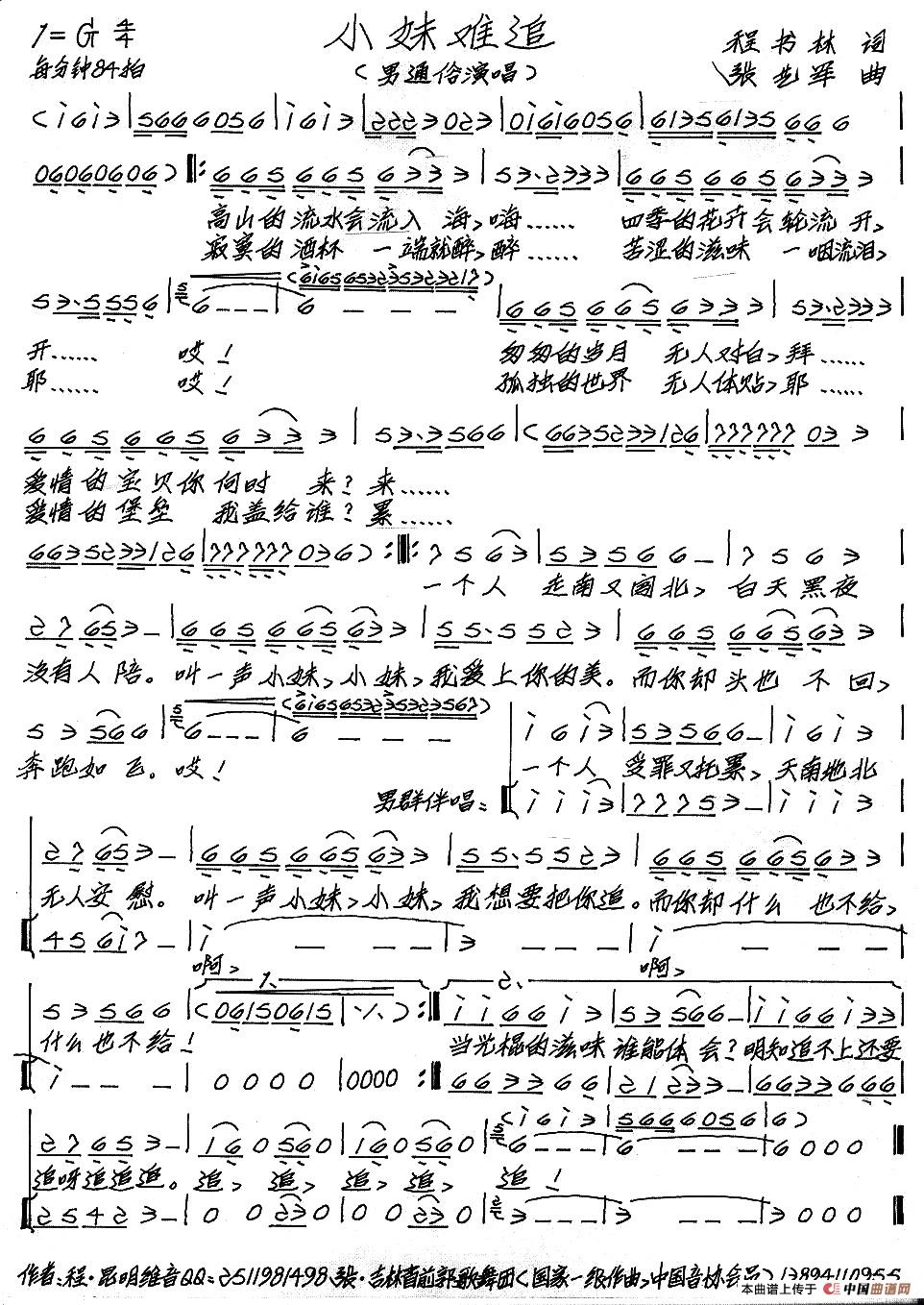 致谢:《中国曲谱网》衷心感谢作者老师馈赠原版歌谱!