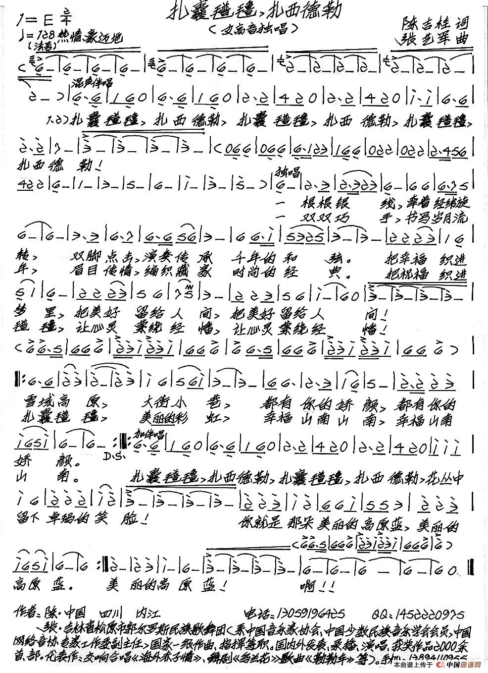 关于《扎囊氆氇,扎西德勒》曲谱的评论