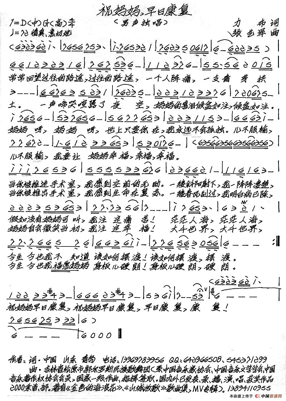 致谢:《中国曲谱网》衷心感谢作者老师馈赠原版歌谱!