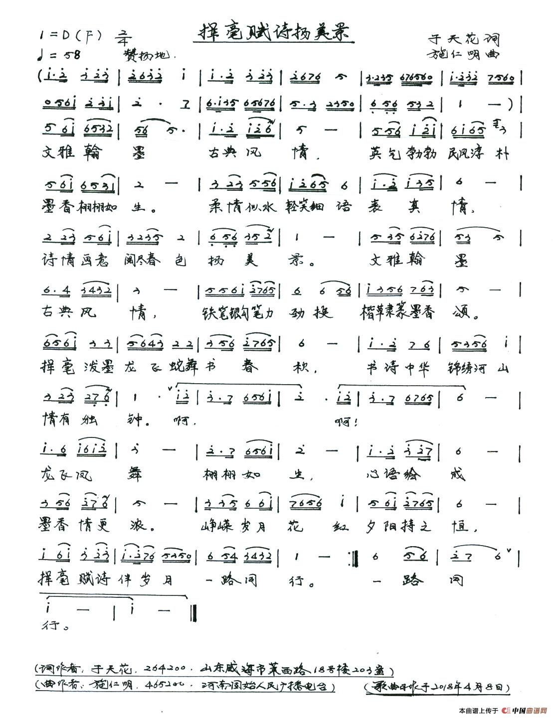 关于《挥亳赋诗扬美景》曲谱的评论