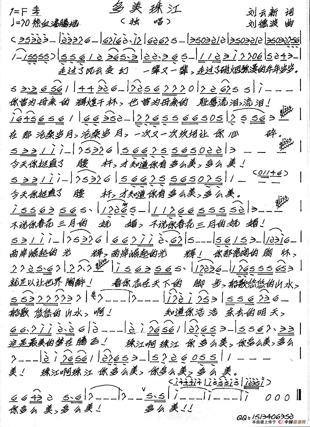 致谢:《中国曲谱网》衷心感谢作者老师馈赠原版歌谱!