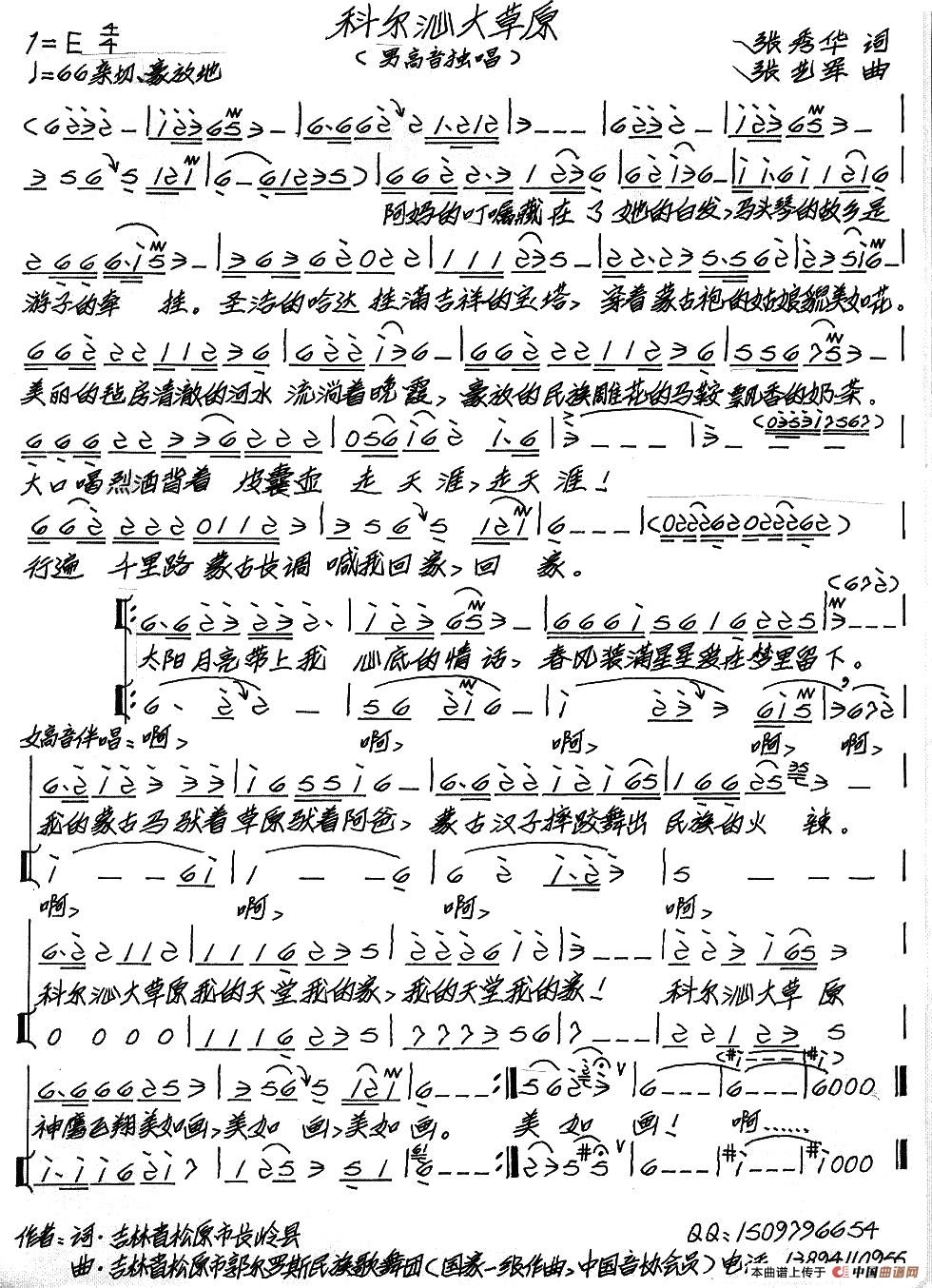 关于《科尔沁大草原》曲谱的评论