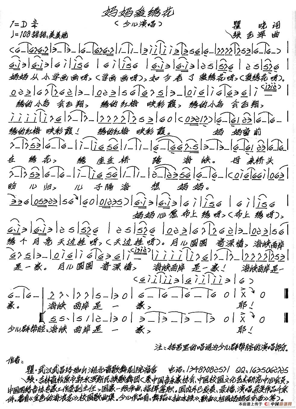 致谢:《中国曲谱网》衷心感谢作者老师馈赠原版歌谱!