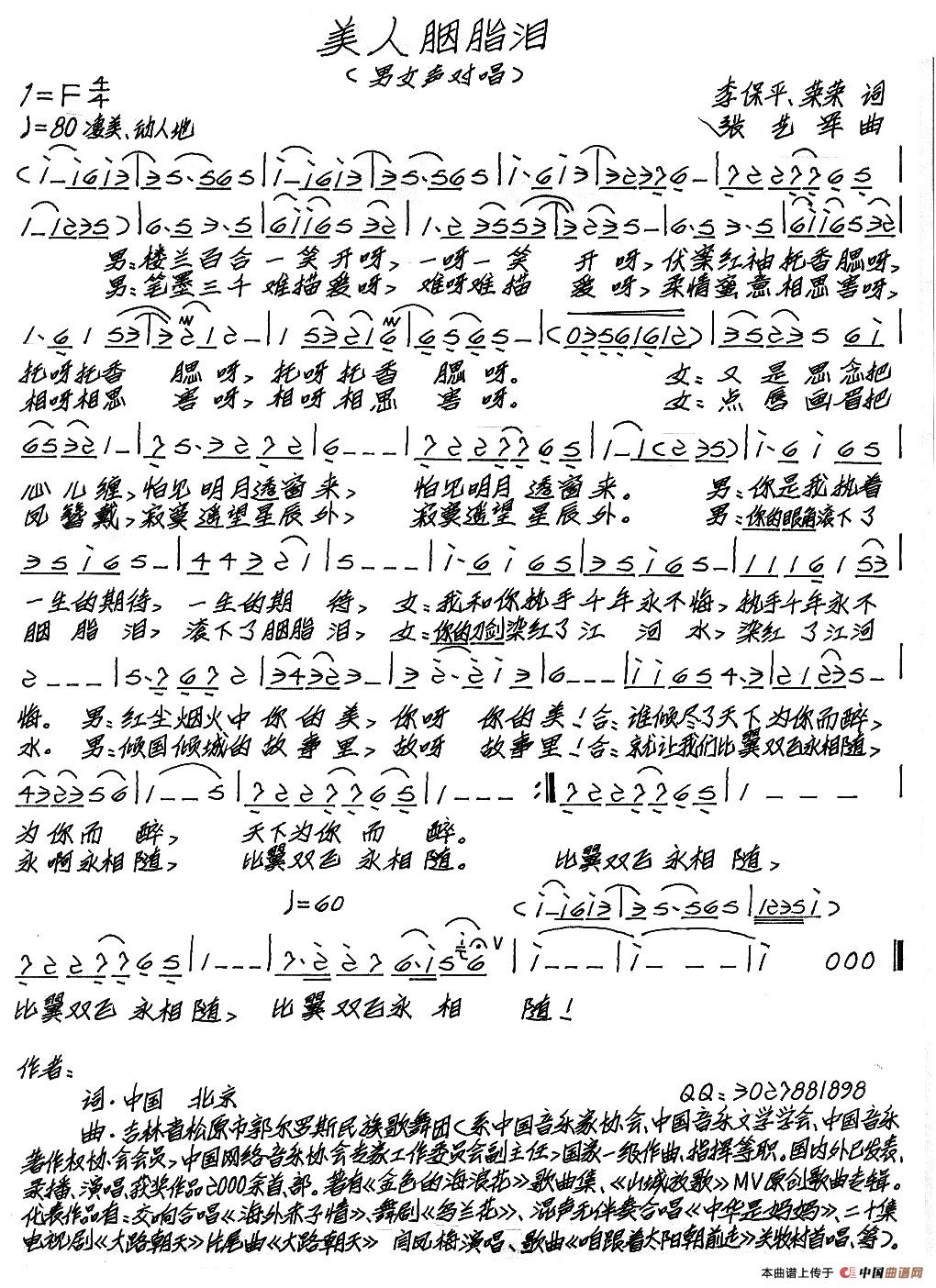 致谢:《中国曲谱网》衷心感谢作者老师馈赠原版歌谱!
