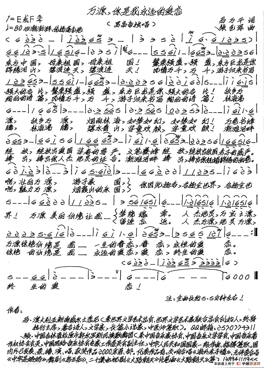 关于《万源,你是我永远的爱恋》曲谱的评论