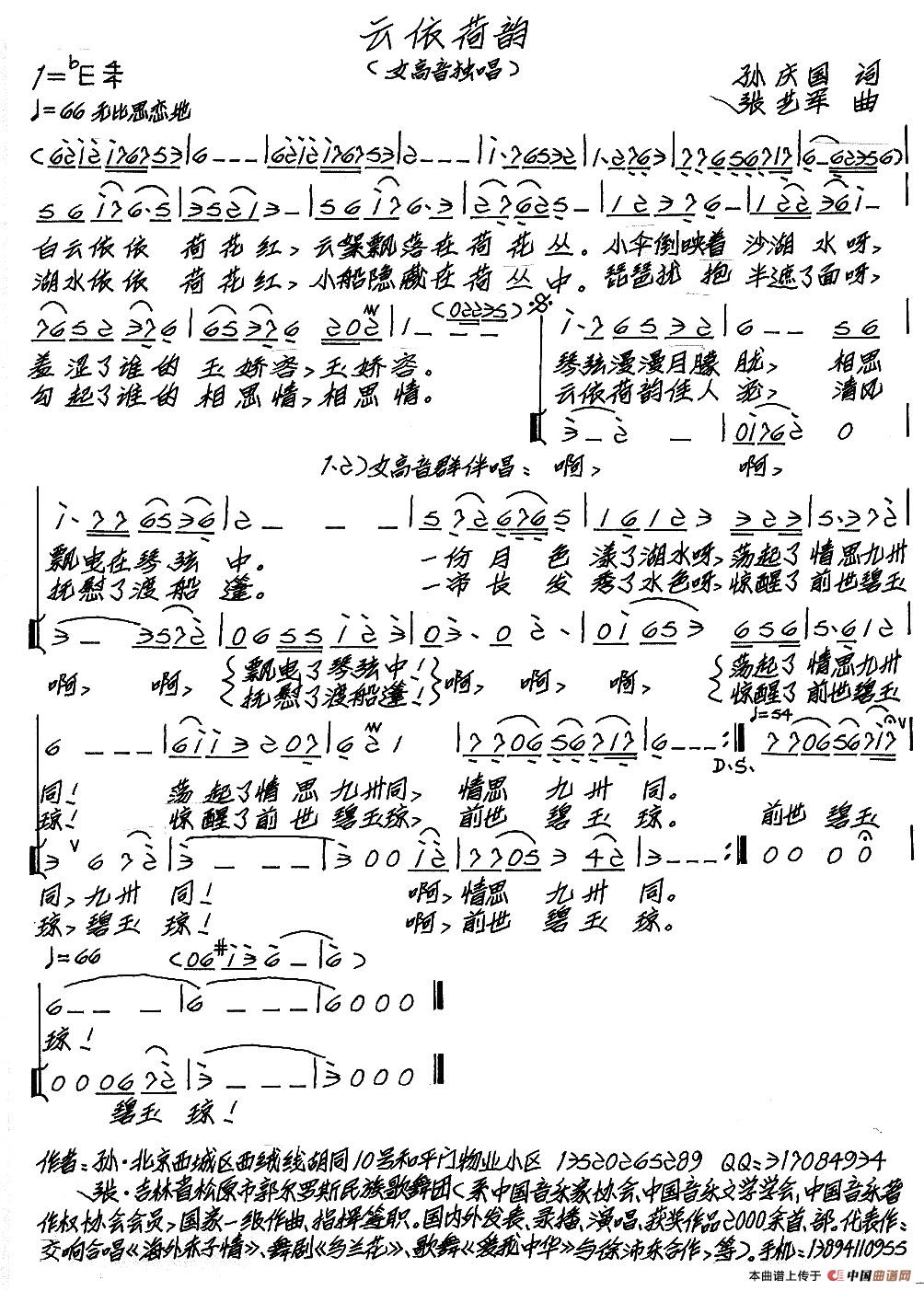 关于《云依荷韵》曲谱的评论