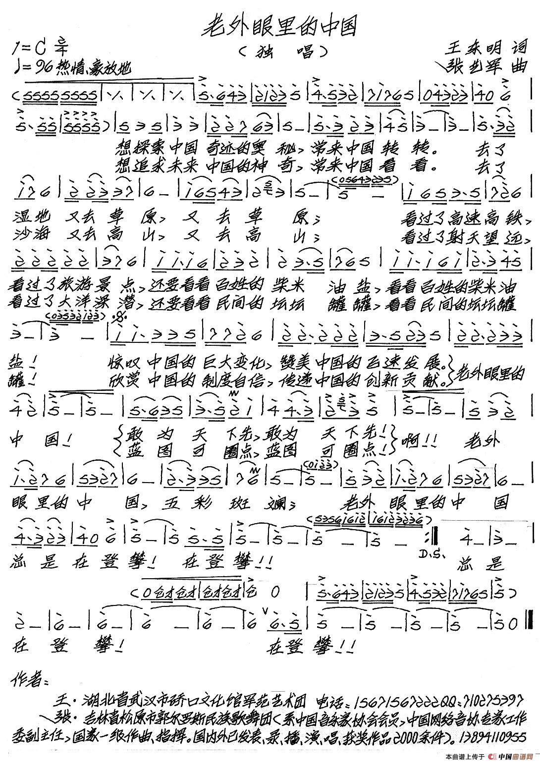 致谢:《中国曲谱网》衷心感谢作者老师馈赠原版歌谱!
